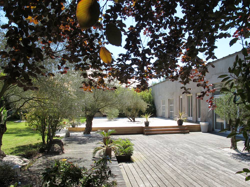 Notre espace extérieur se compose d'un grand jardin couvert d'une superficie de 400 m², d'une terrasse de 260 m² ainsi que d'un très grand jardin de 1 400 m².